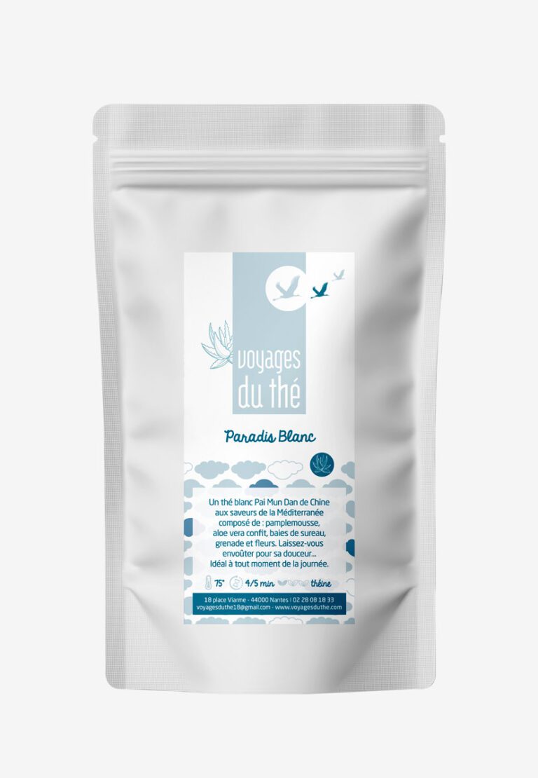 Un thé bai Mun Dan de Chine aux saveurs de la Méditerranée composé de : pamplemousse, aloe vera confit, baies de sureau, grenade et fleurs. Laissez-vous envoûter par sa douceur.